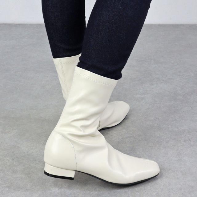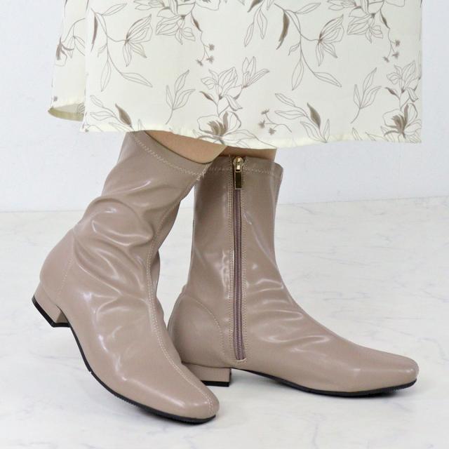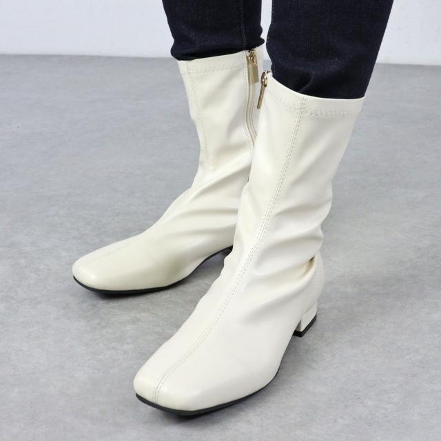 スクエアトゥと甲〜筒周りのスッキリとしたキレイめシルエットが、女性らしい足元を演出してくれるミドルブーツです。