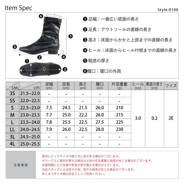 レディース ミドルブーツ ストレッチ素材 歩きやすい スクエアトゥ ローヒール 3cmヒール No.9100 22.5cm-24.5cm 黒 ブラック LiBERTYDOLL リバティードール