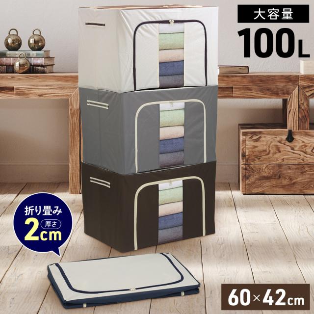 収納 ボックス 衣類 収納ボックス フタ付き 収納ケース 窓付き 衣類収納 不織布製 100L 窓付き収納ボックス おしゃれ 積み重ね 収納BOX