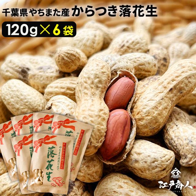 令和7年新豆 落花生 ピーナッツ 千葉県 やちまた産 からつき 120g×6袋 中手豊 八街産 殻付き 殻つき らっかせい 高級感 クラフト袋 送料無料 おつまみ お取り寄せ プレゼント 差し入れ お土産 酒のつまみ お中元