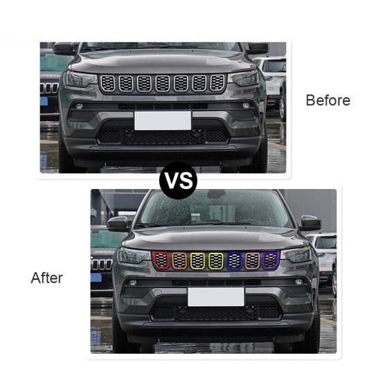 AL レーシング グリル ABS フロント グリル カバー 装飾 ステッカー 適用: ジープ/JEEP コンパス 2021 2022 ブラック AL-RR-2581 カラー: ブラック