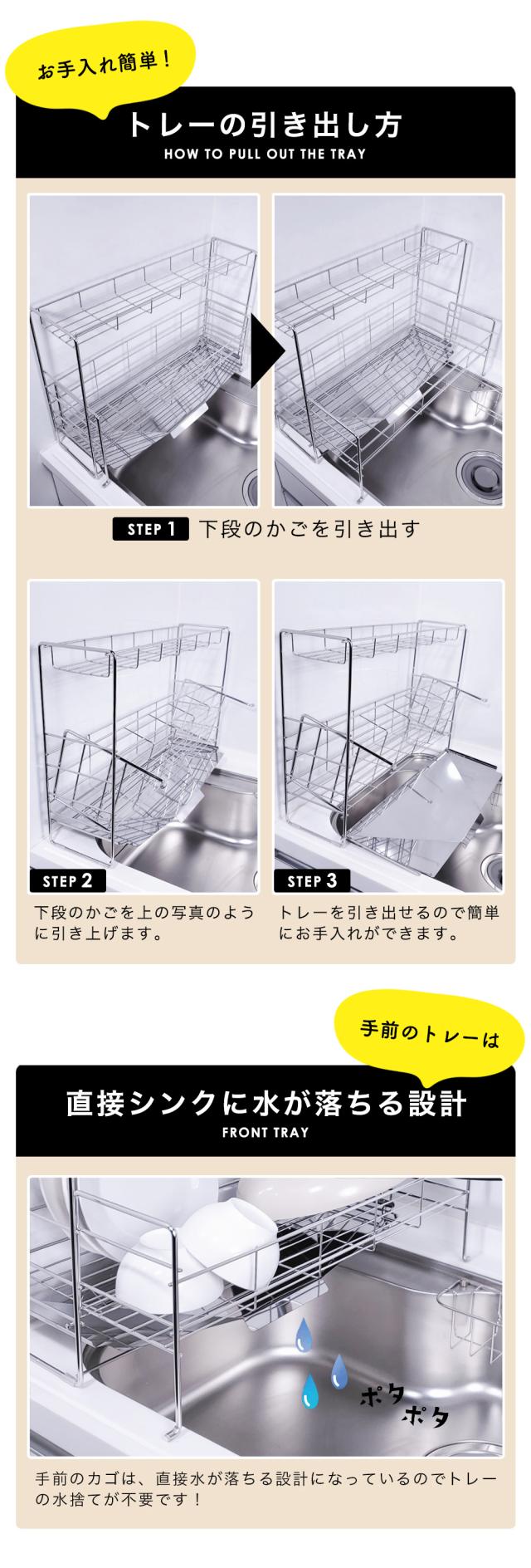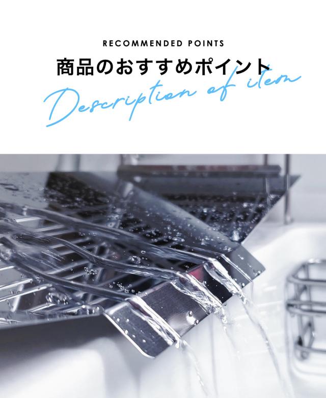 他社類似製品とは角度が違うので、流れる水のスムーズさが全然違います!本体に設置するタイプなので、トレーのズレやシンクトップを傷つける心配もありません。