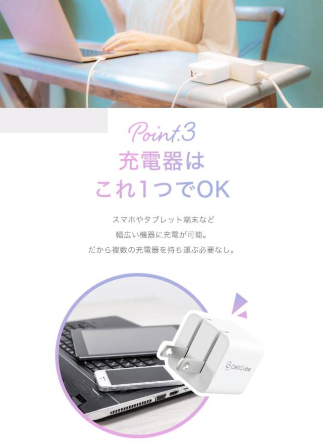 ●持ち運びに便利な折り畳み式コンセントプラグ採用。プラグが収納できるため、ポケットやバッグの中でも邪魔になりません。