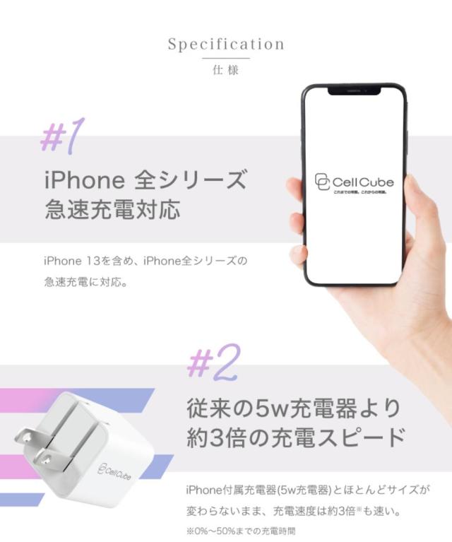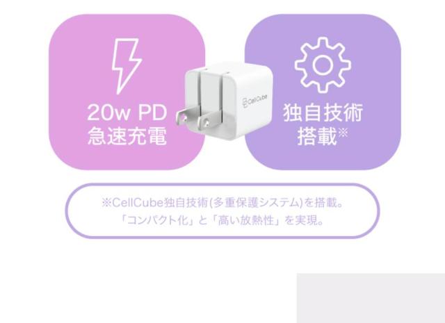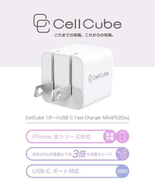 CellCube 20w 超ミニサイズ 急速充電器【PSE認証/超小型サイズ/折りたたみ式プラグ/PD3.0対応/安全安心/日本ブランド】iPhone/iPad/Android 各種対応