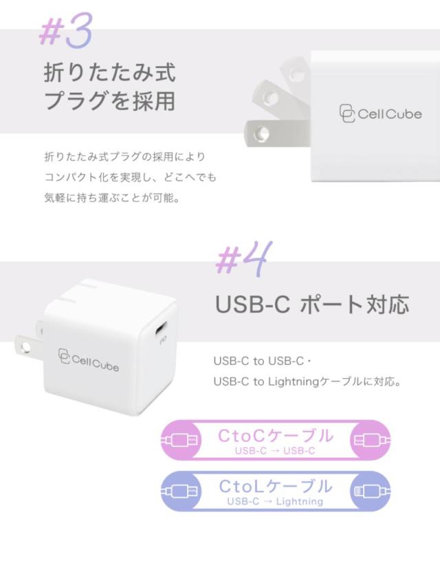 充電器 スマフォ ACアダプター 急速充電器 20w USB-C ポート 超ミニサイズ [ CellCube CC-AC05 折りたたみ式プラグ AC充電器 ] 【日本ブランド】 PD3.0 PSE認証 GaN iPhone iPad Android Galaxy Apple コンセント USB充電器