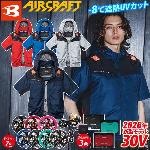 バートル エアークラフト 2026年モデル ACフーディ半袖ジャケット AC1196 AC10 AC10-1/AC10-2 30Vファンバッテリーセット UV BURTLE AIRCRAFT フルハーネス 熱中症対策 撥水加工 UVカット 遮熱 大型フード メンズ レディース 男女兼用