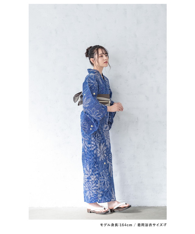 浴衣 セット レディース 浴衣セット 半幅帯 2023 大人 3点セット モダン 青系 ブルー 花 金魚 縞 ラメ グレー S フリー 送料無料