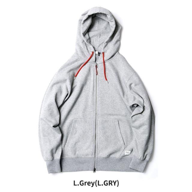 合わせる洋服を選ばない、程よいゆとりを持たせたフルジップパーカー。