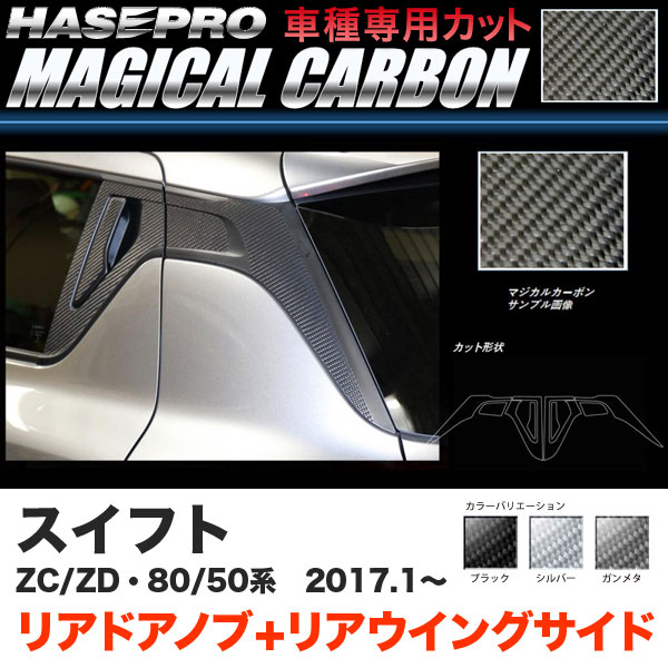ハセプロ スイフト ZC50/80系 ZD50/80系 H29.1〜 マジカルカーボン リアドアノブ+リアウイングサイド ブラック ガンメタ シルバー 全3色
