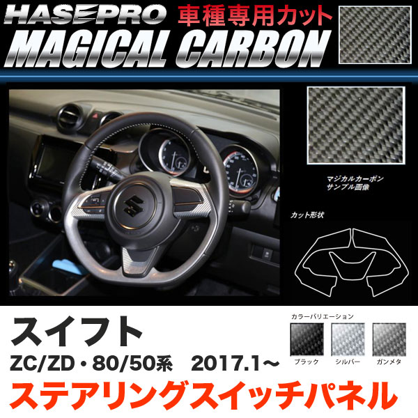ハセプロ スイフト ZC50/80系 ZD50/80系 H29.1〜 マジカルカーボン ステアリングスイッチパネル ブラック ガンメタ シルバー 全3色