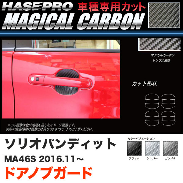 ハセプロ ソリオバンディット MA46S H28.11〜 マジカルカーボン ドアノブガード カーボンシート ブラック ガンメタ シルバー 全3色