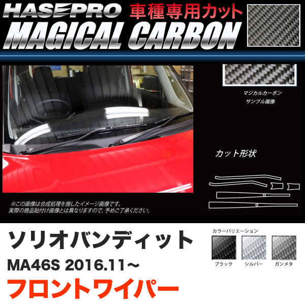 ハセプロ ソリオバンディット MA46S H28.11〜 マジカルカーボン フロントワイパー用ステッカー カーボンシート ブラック ガンメタ シルバー 全3色