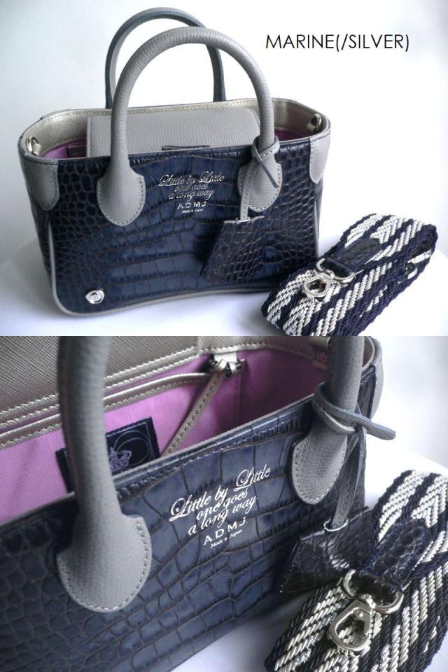 クーポン対象外 ADMJ エーディーエムジェイ バッグ クロコ型押し レザー マイクロミニトート ショルダー 23SS01004 グレー ネイビー