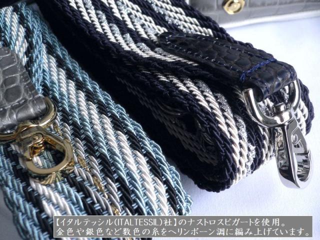 金色や銀色など数色の糸をヘリンボーン調に