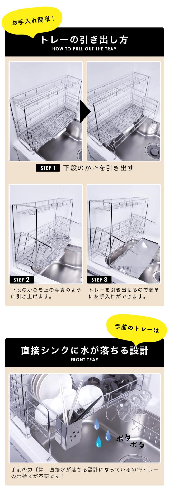 【公式ショップ 正規品】 水切りラック 伸縮 シンク上 ステンレス スリム 2段 スライド 大容量 水切り籠 シンクサイド 渡せる 水切りかご シンク内 おしゃれ グラス 収納 グラススタンド シンク ワイド 水切り 皿立て 箸立て シリコン 日本製 燕三条 送料無料 50042