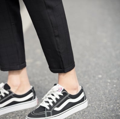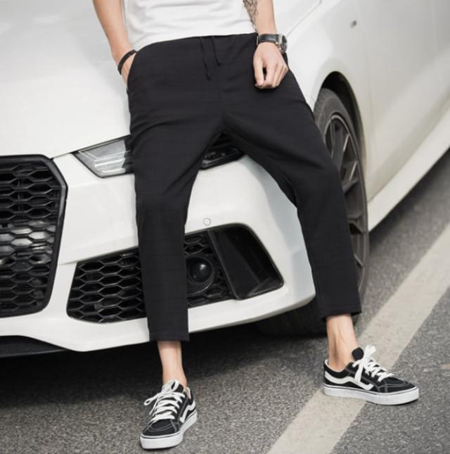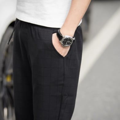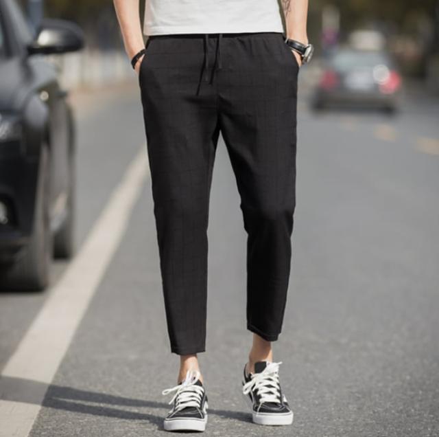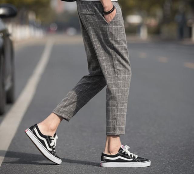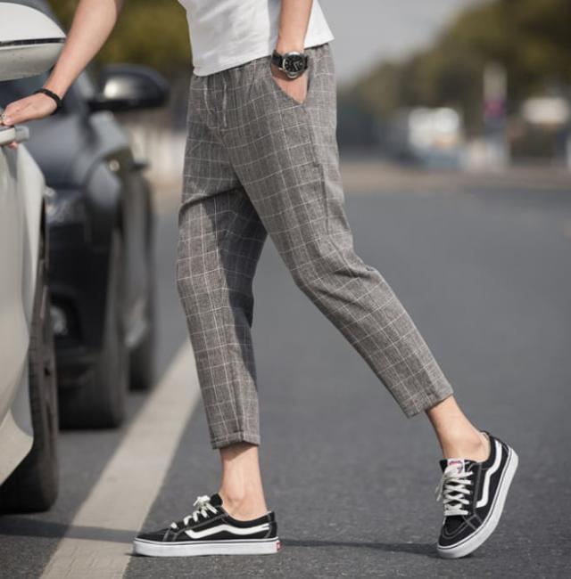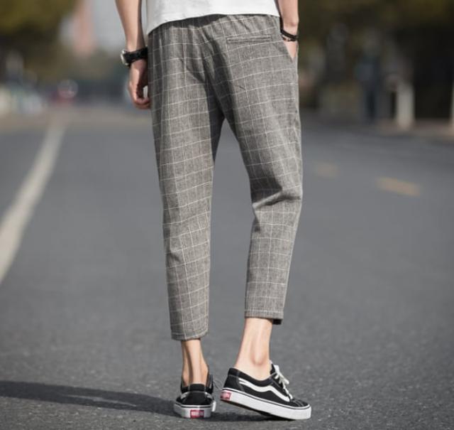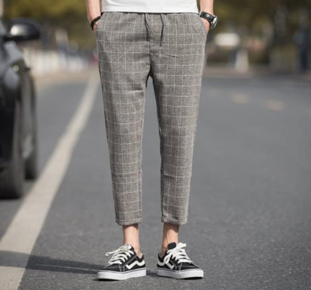 9部丈なので程よい抜け感があり、うっすらとチェック柄が入っていてカジュアルな場面でおしゃれに着こなせます。