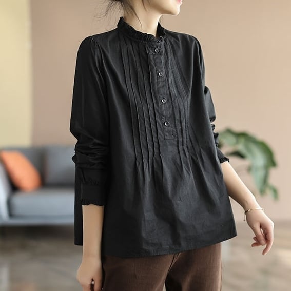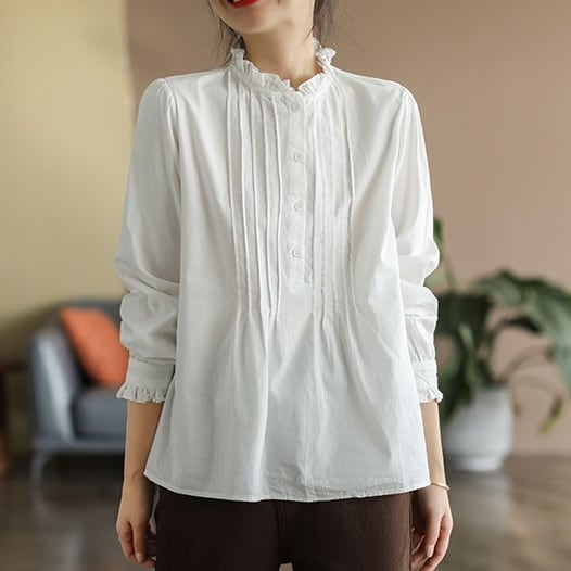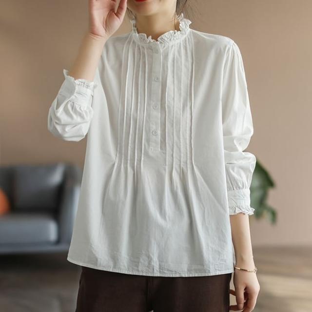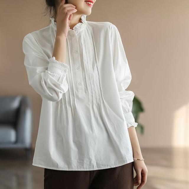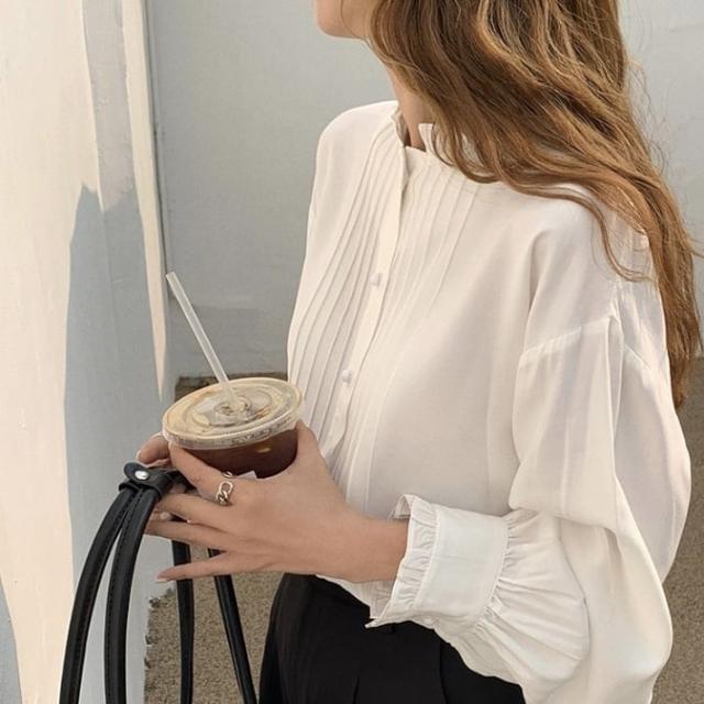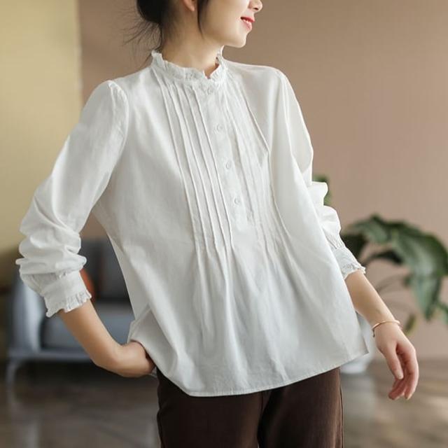 トップス シャツ ブラウス 袖あり 長袖 ボリューム袖 スタンドカラー レース フリル かわいい 大人可愛い ピンタック きれいめ カジュアル 大人 おしゃれ お洒落 レトロ 大人可愛い
