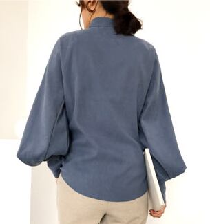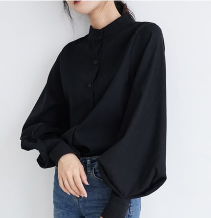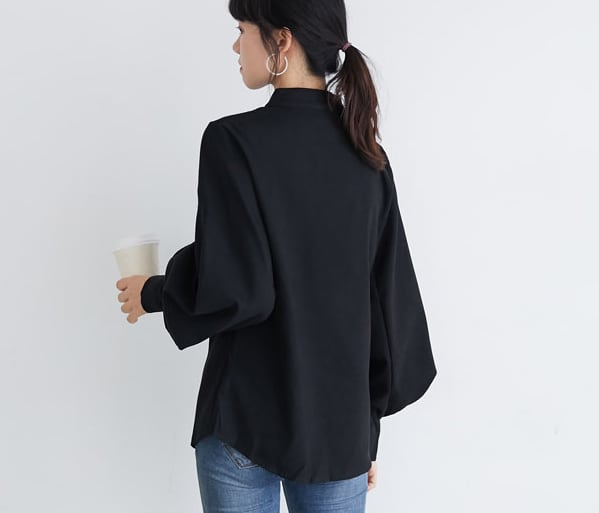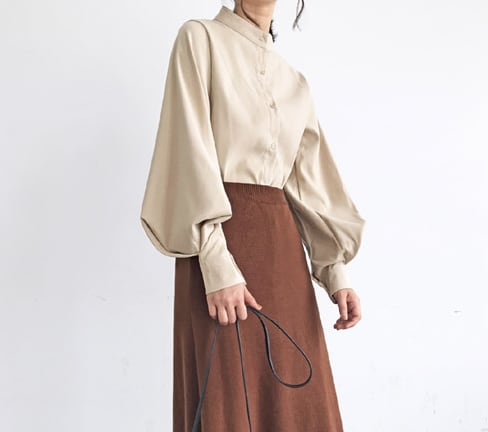 ランタンスリーブがかわいく、柔らかな肌触りで着心地のいいシャツブラウスです。