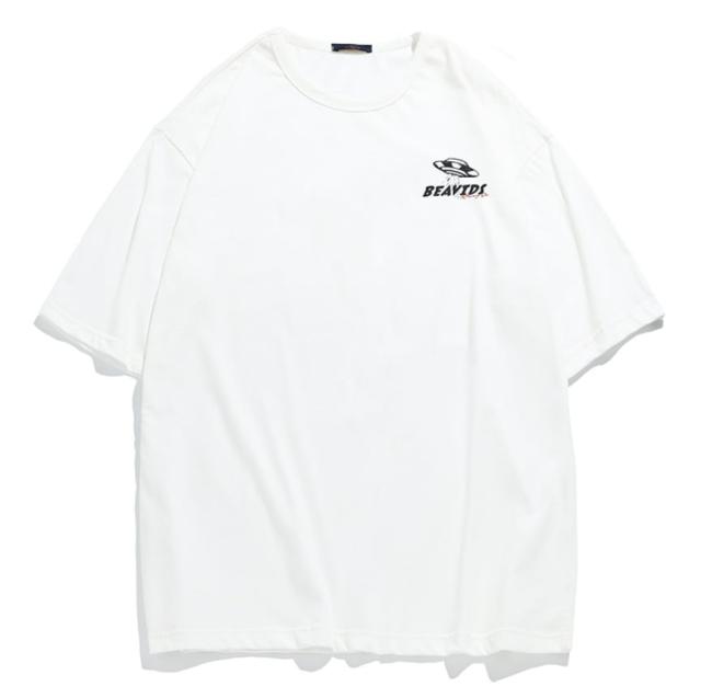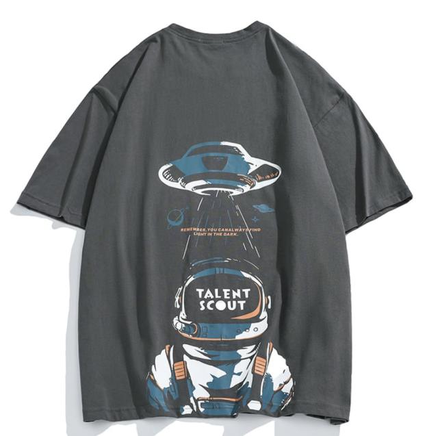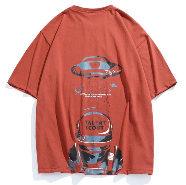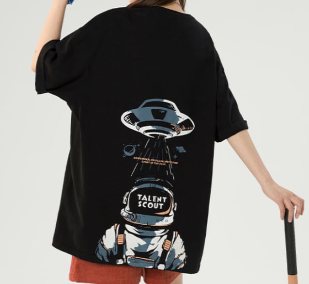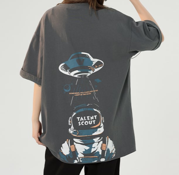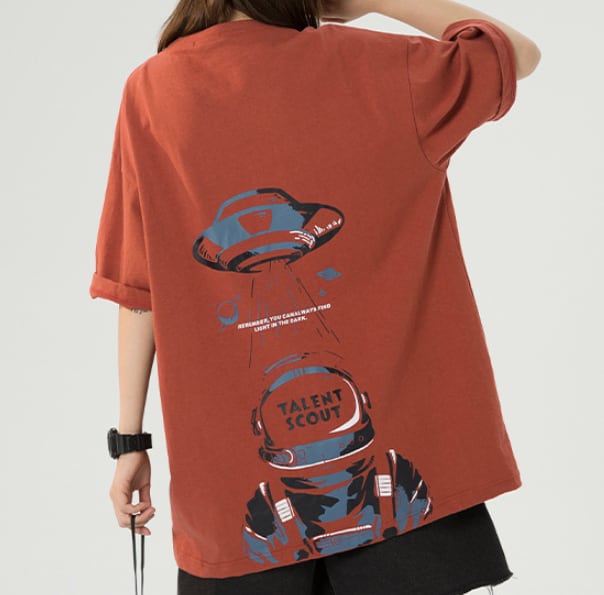 前面はシンプルなワンポイトデザインがほどこされているだけでありながら、背面には大きなバックプリントがありしっかりとした主張もあります。