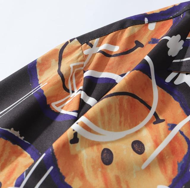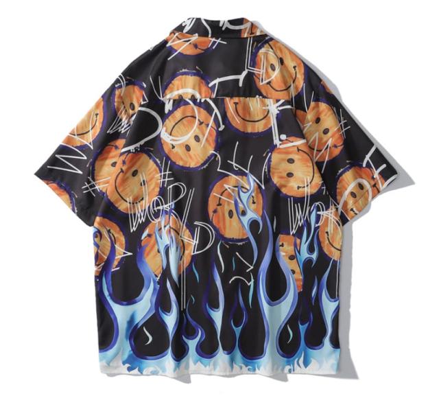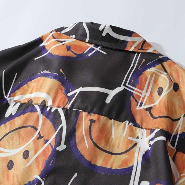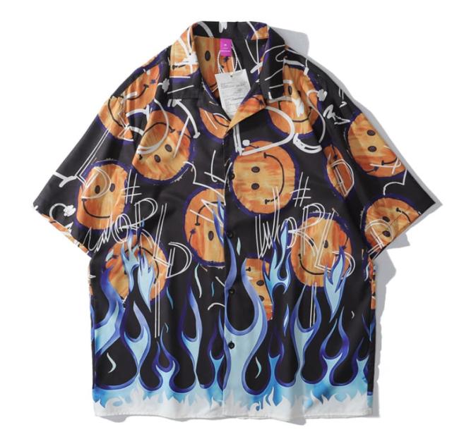 シャツ 開襟シャツ メンズ カジュアル トップス ニコちゃんマーク スマイリーフェイス ニコニコマーク 半袖