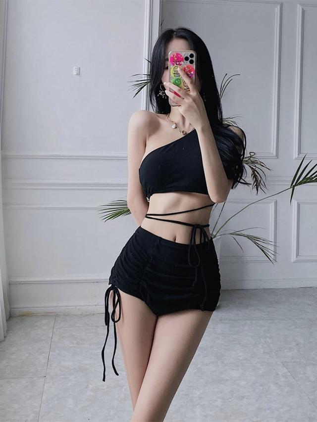 韓国スタイルのワンショルダーセパレーツスイムウェア。