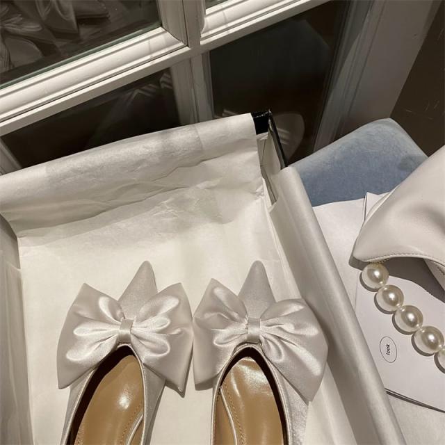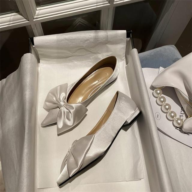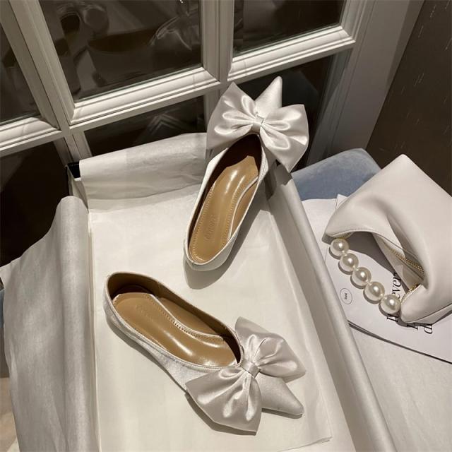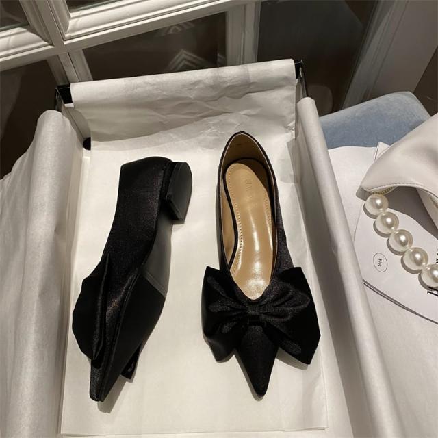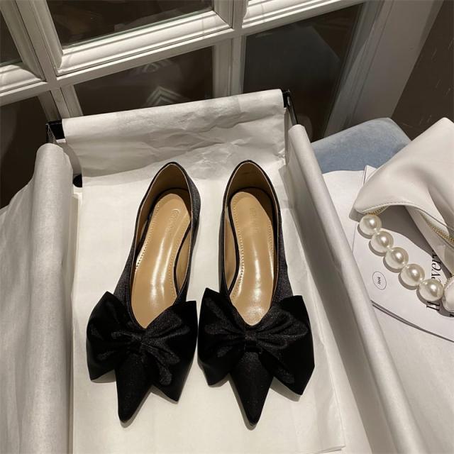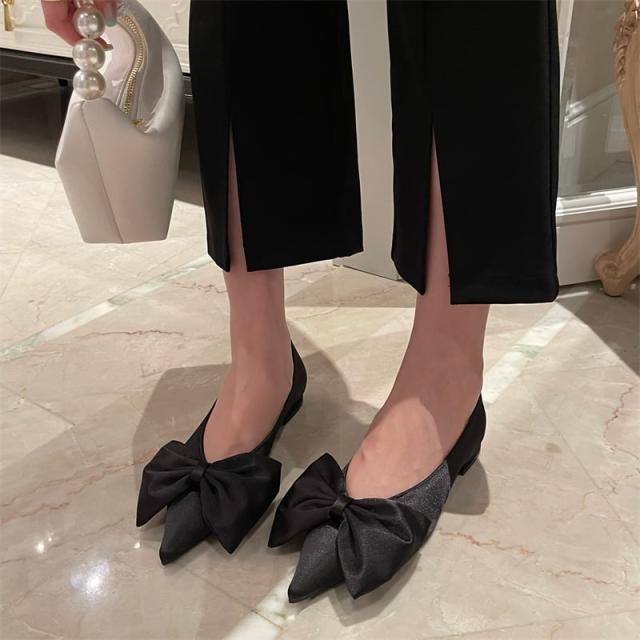 レディース フラット シューズ パンプス ぺたんこ 1cmヒール ローヒール ポインテッドトゥ PU リボン 軽い かっこいい カジュアル 大人 流行り 上品 きれいめ シンプル クラシック