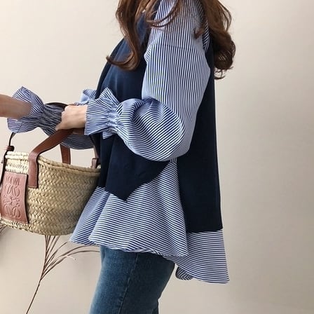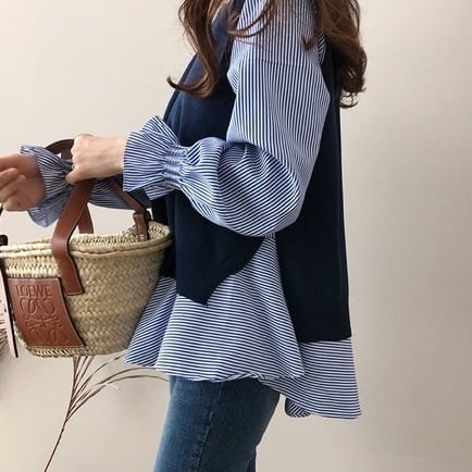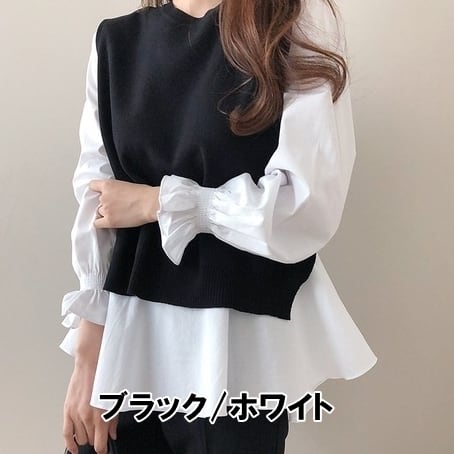 ベストとのレイヤードデザインがお洒落なブラウスのセットアップです。