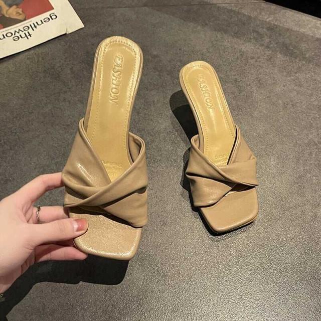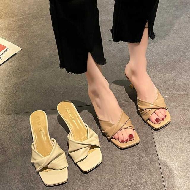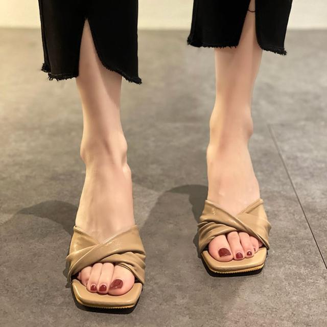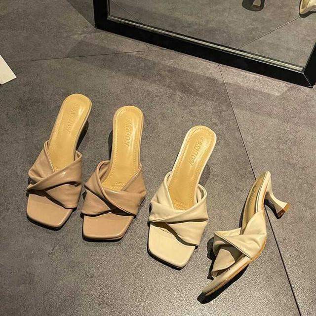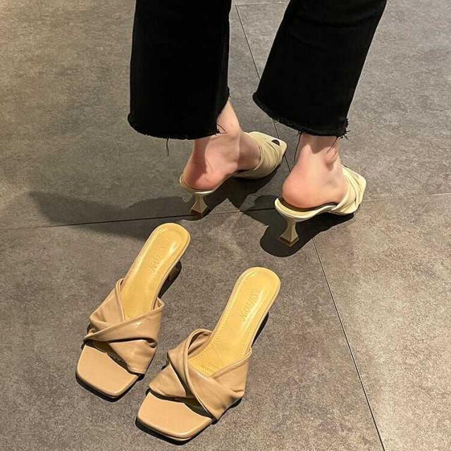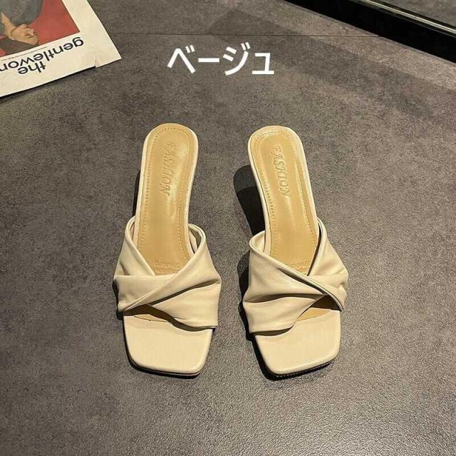 レディース サンダル ミュール ヒール オープントゥ 7cmヒール スクエアトゥ PU 軽い かっこいい カジュアル 大人 流行り 上品 きれいめ シンプル クラシック エレガント 個性的 涼し気