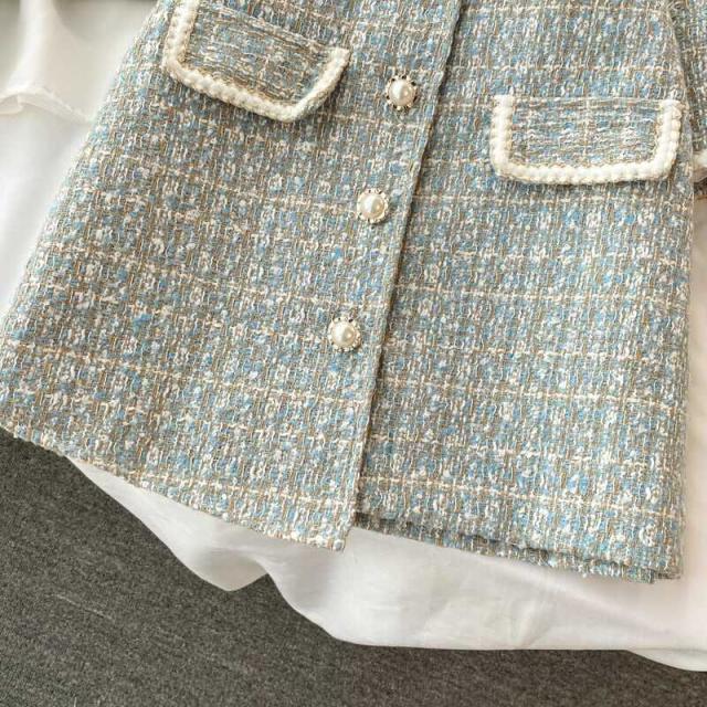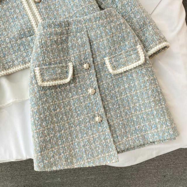 モードな仕立てがかっこいいツイードのスカートスー3点セットです。