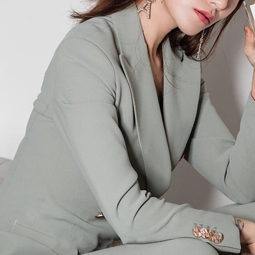 メリハリのあるスリムな仕立てが綺麗なクラシカルなパンツスーツセットです。