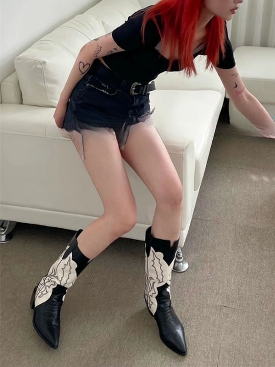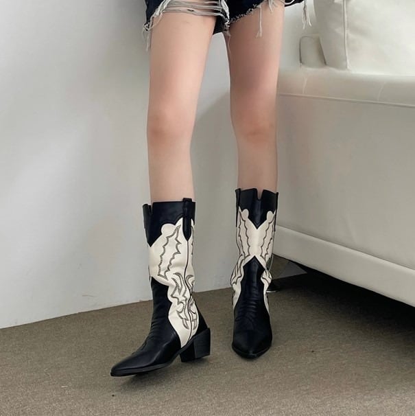 レディース おしゃれ お洒落 人気 安い 激安 お得 送料無料 ウエスタンブーツ 5.5cmヒール 太ヒール ポインテッドトゥ 韓国 かっこいい 大人 可愛い かわいい 流行り 上品 クラシック レトロ