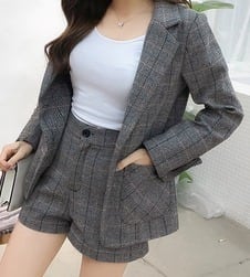 セットアップ ジャケット スーツ ジャケット テーラード アウター ショートパンツ チェック ツイード風 ショート丈 袖あり 長袖 2点セット シンプル カジュアル 大人 上品 おしゃれ