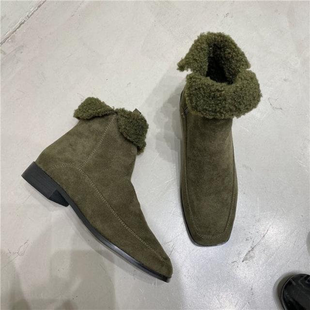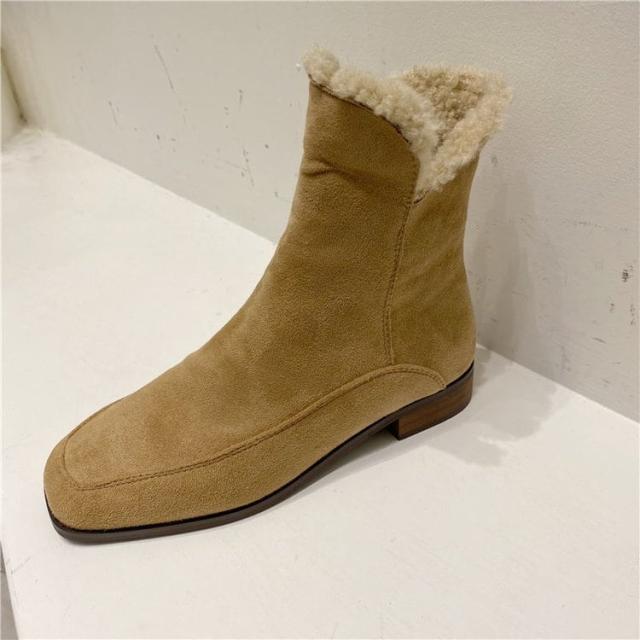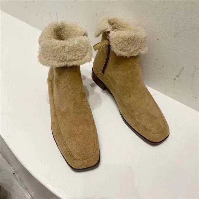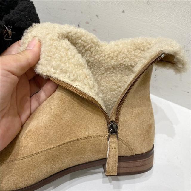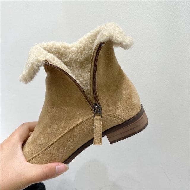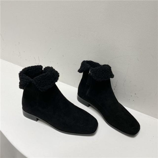 レディース ショートブーツ ムートンブーツ サイドジップ 2cmヒール ローヒール ファー ボア 歩きやすい あったか 韓国 カジュアル 大人 可愛い かわいい ラクチン 流行り きれいめ 個性的