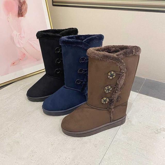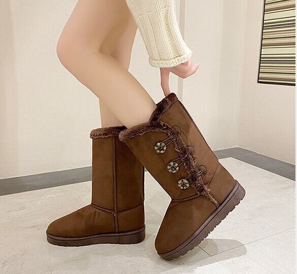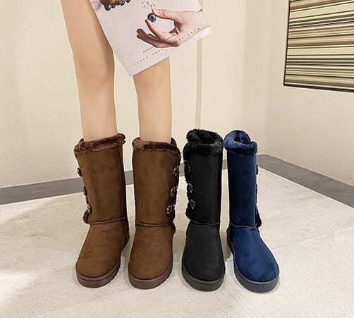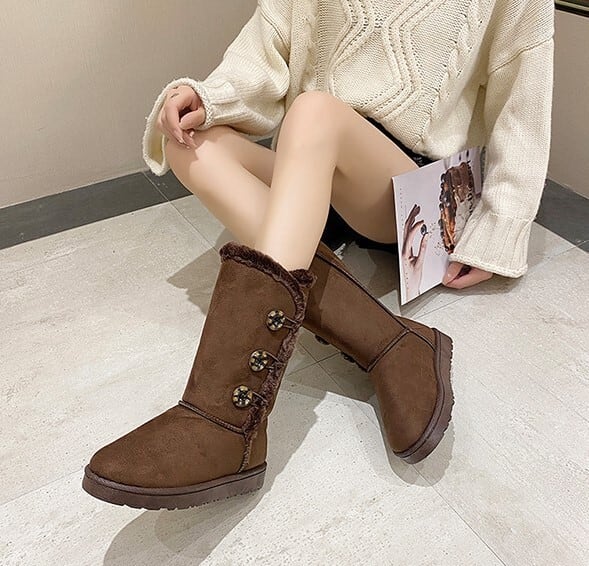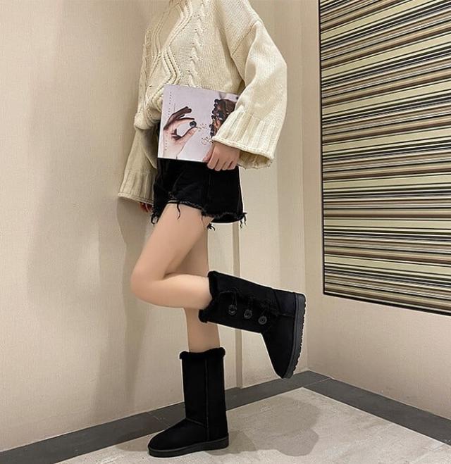 サイドボタンが付いたモコモコキュートなムートンブーツ。