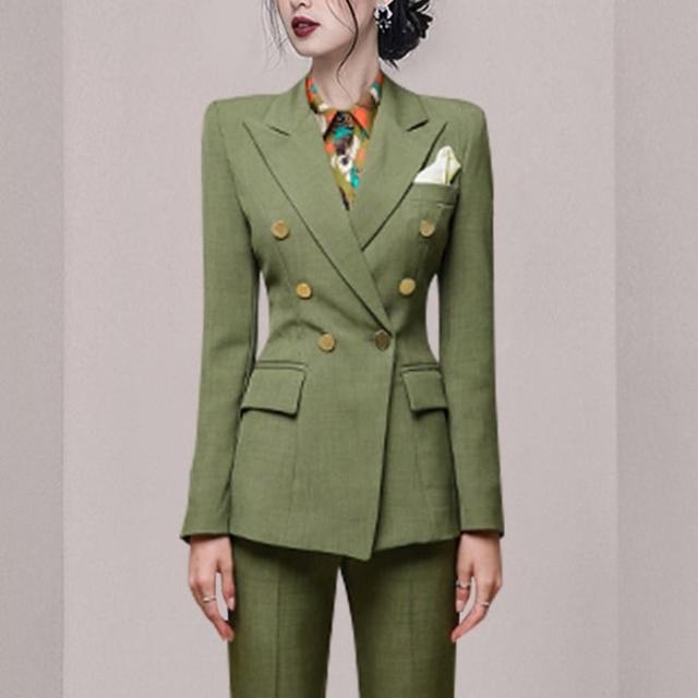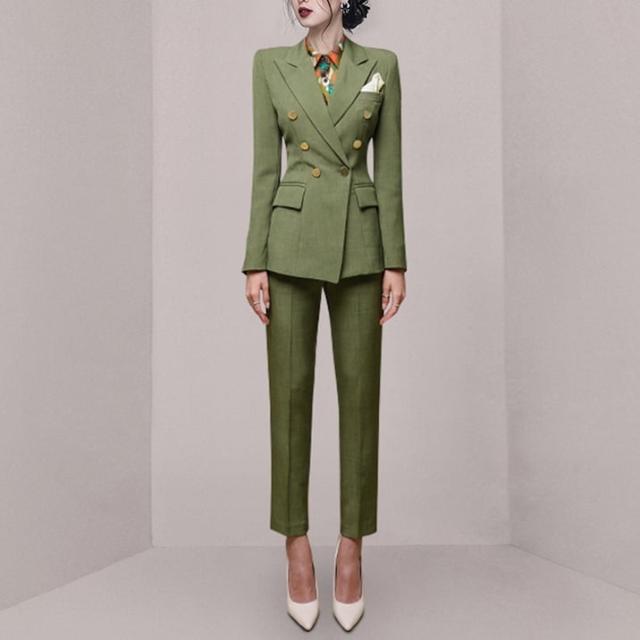 セットアップ ジャケット 上着 スーツ ロング ロング丈 袖あり 長袖 スラックス ボタン装飾 ヴィンテージ風 センタープレス スリム アンクルパンツ タイト 上下セット 2点セット