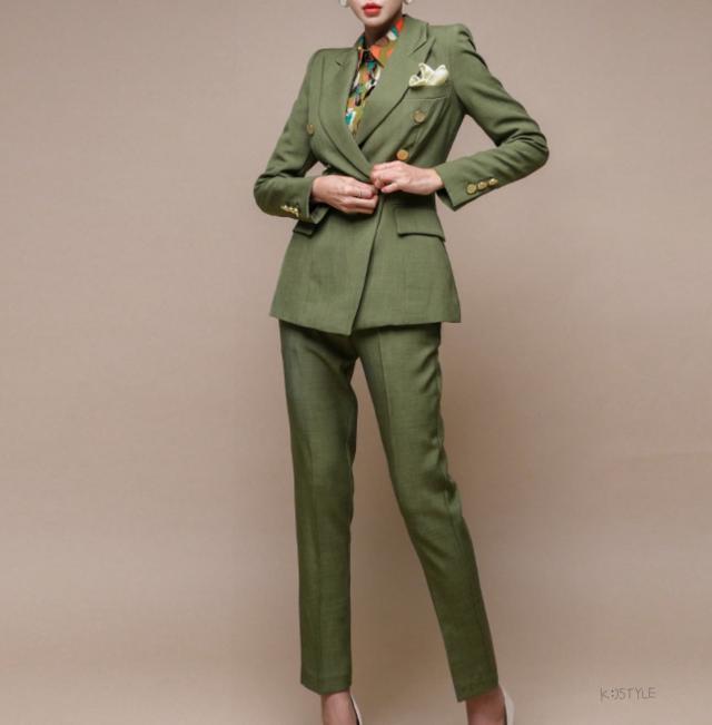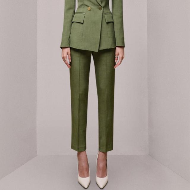 メリハリのあるジャケットト相性抜群なセンタープレス入りアンクルパンツは美脚効果が叶います。