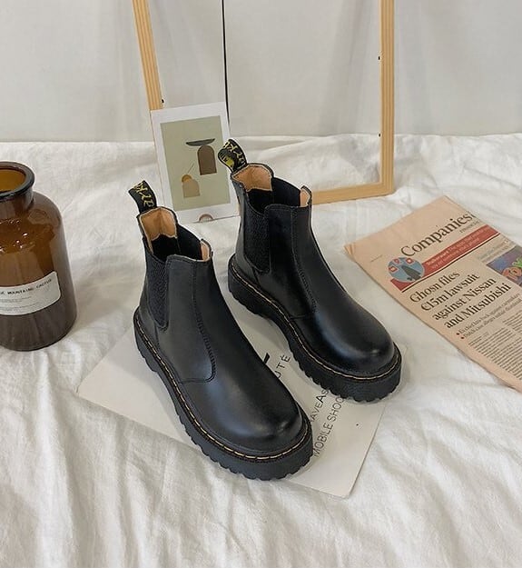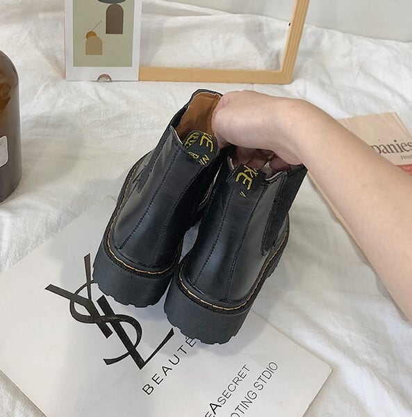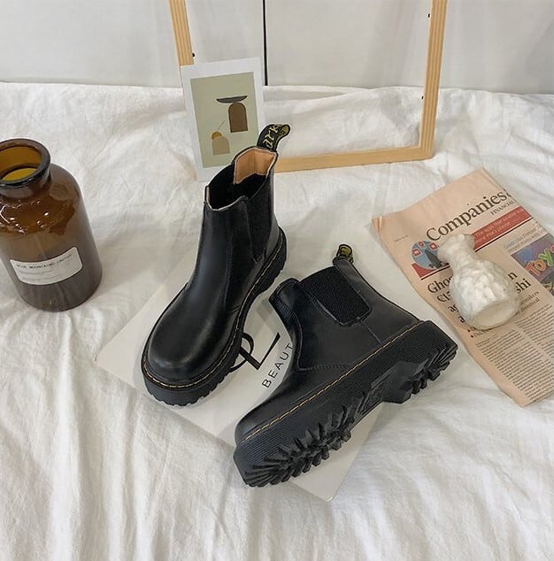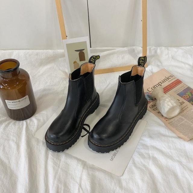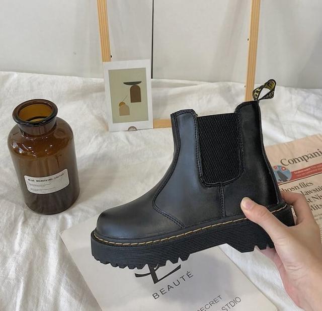 レディース ショートブーツ 太ヒール ローヒール タンクソール サイドゴア PU 歩きやすい 韓国 かっこいい カジュアル 可愛い かわいい ラクチン 上品 きれいめ シンプル クラシック