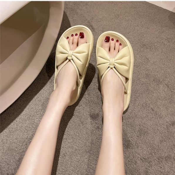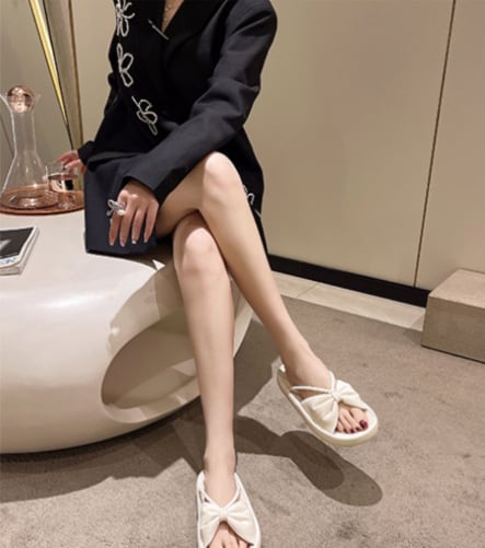 大きなリボンがとてもかわいい印象のガーリーな厚底サンダルです。