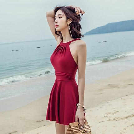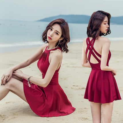 背中がセクシーな露出控えめなワンピース水着です。