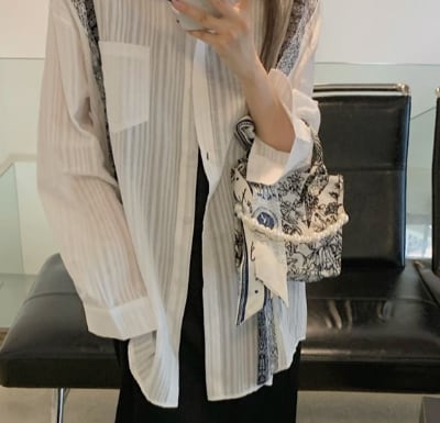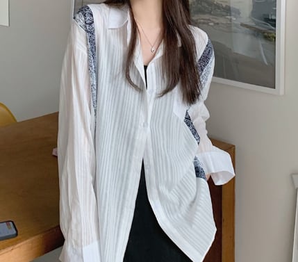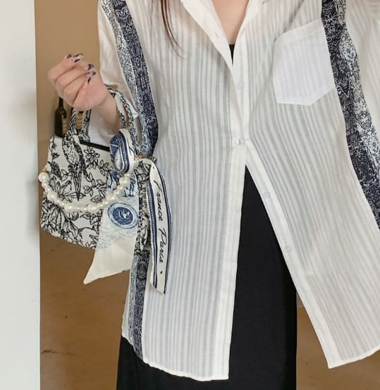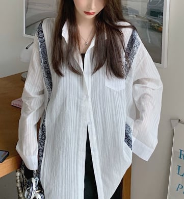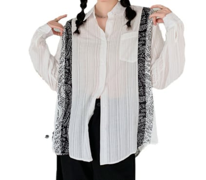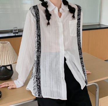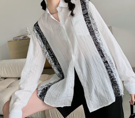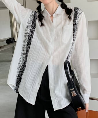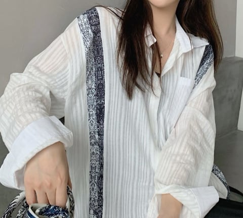 ワイシャツ カッターシャツ ブラウス 長袖 ロング ペイズリー コットン 綿 韓国 可愛い かわいい かっこいい カジュアル おもしろ 大人 上品 きれいめ シンプル サマー 夏 スポーツ
