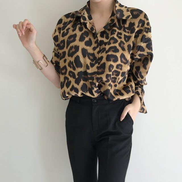 ブラウス 長袖 ロング 柄 ポリエステル 韓国 かっこいい カジュアル 大人 上品 きれいめ サマー 夏 ストリート レディース 女性用 20代 30代 S M L XL 2XL ゆったり ゆる 大人カラー ヒョウ柄