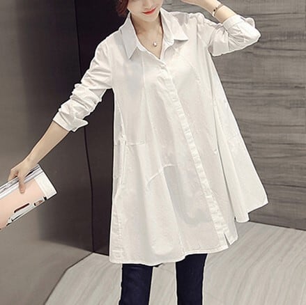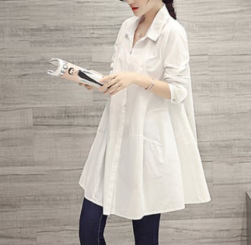 カジュアルにもきれいめコーデにも活躍するシンプルなロング丈シャツです。