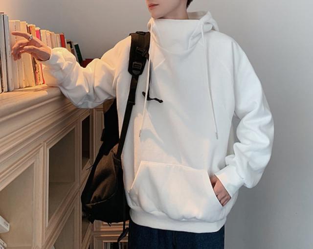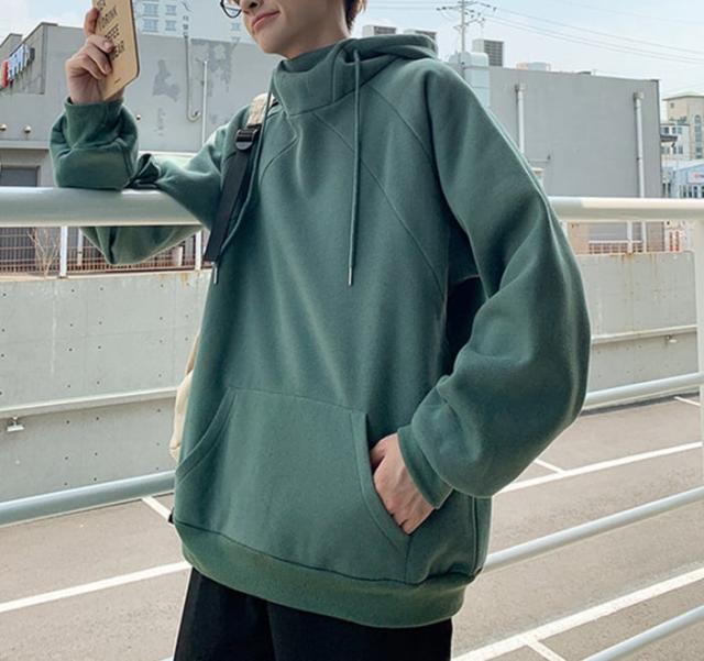カジュアルスタイルの定番アイテム、フード付きプルオーバー。