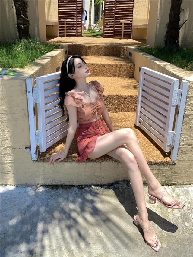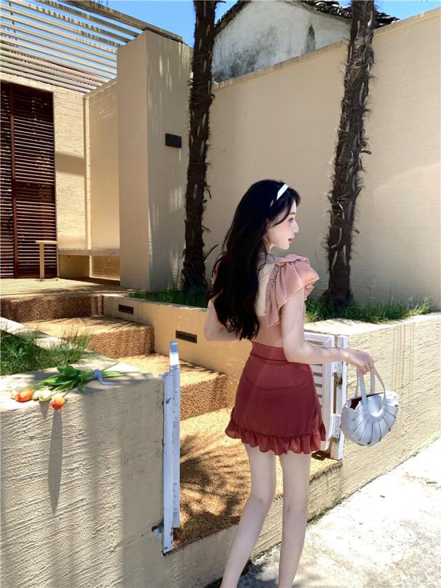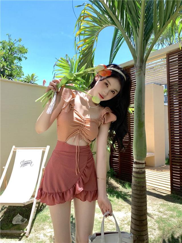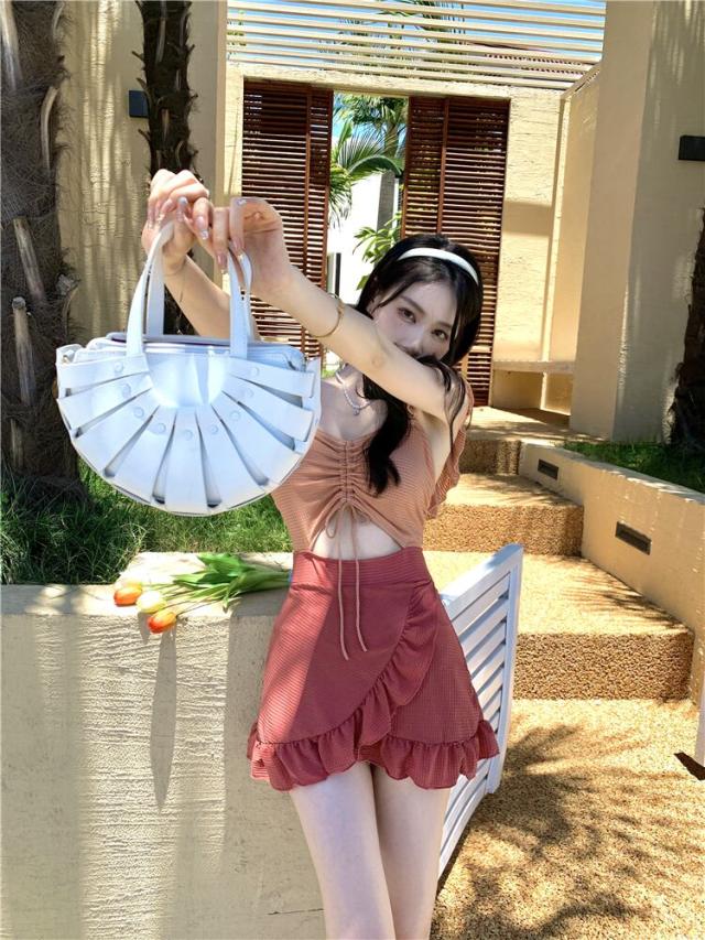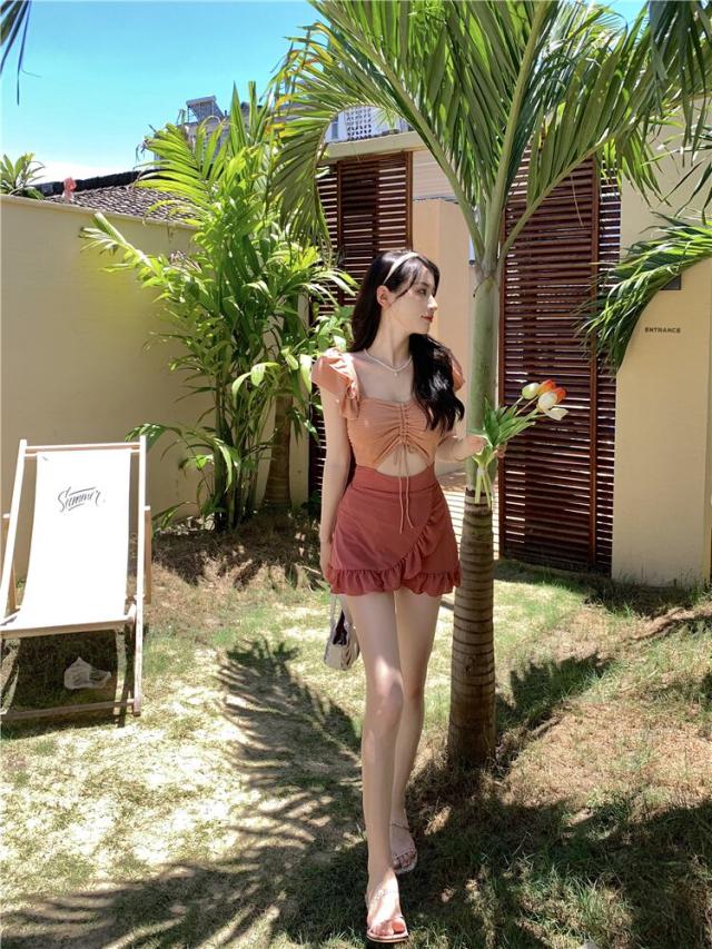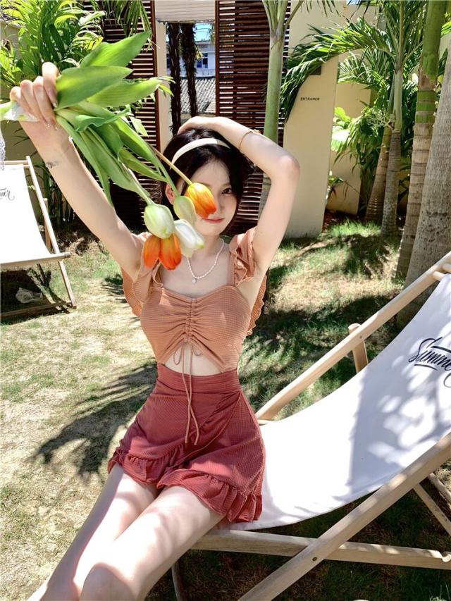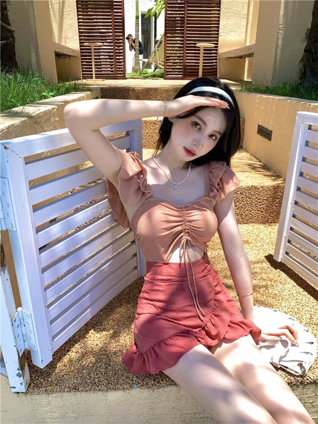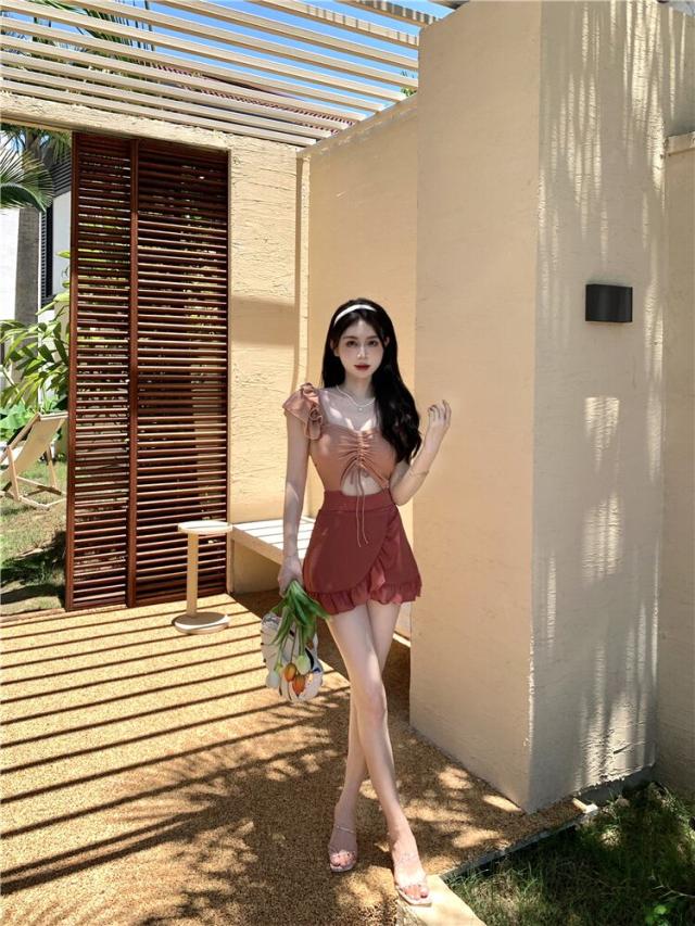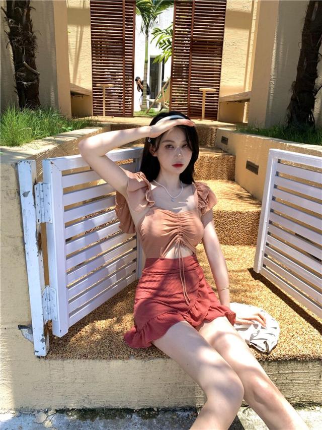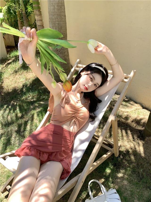 水着 ビキニ スイムウェア ワンピース水着 セクシービキニ 体系カバー水着 ワンピース 体系カバー 二の腕カバー 長袖 リボン フリル ハイウエスト シャーリング 谷間 谷間魅せ 盛れる お得 かわいい 大人可愛い