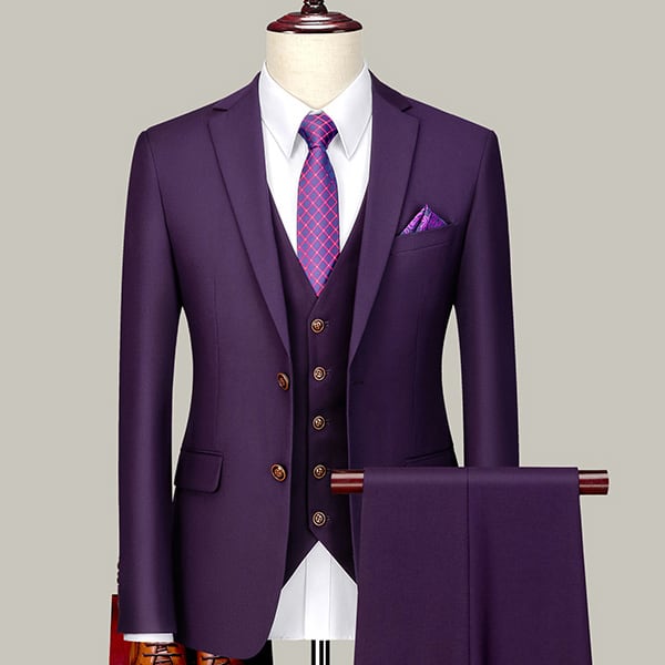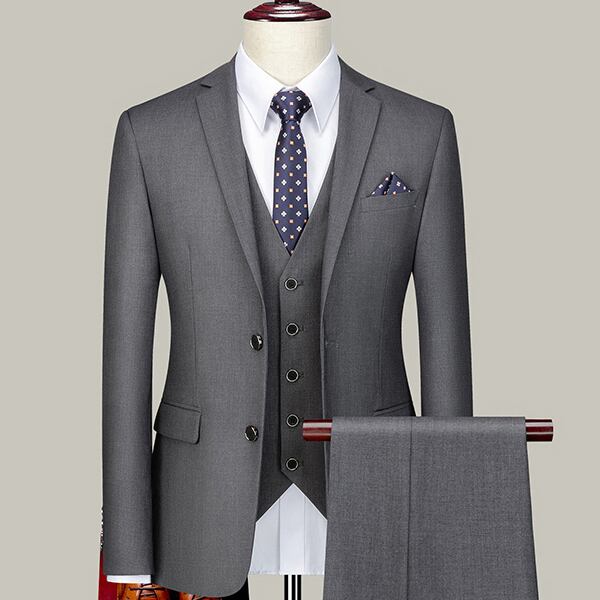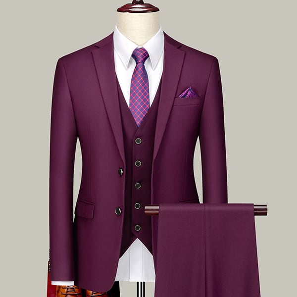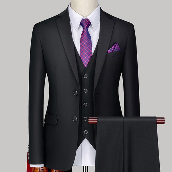 二つボタンのスーツジャケット&スラックス&ベストの3点セット。