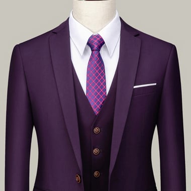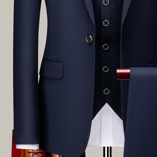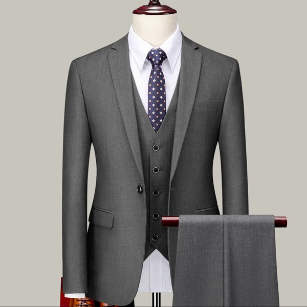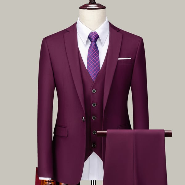 一つボタンのスーツジャケット&スラックス&ベストの3点セット。