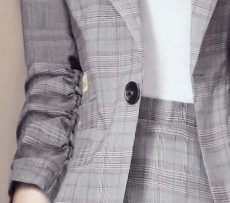 繊細なチェックパターンが上品なジャケット&スカートのセットアップです。