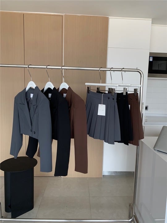 モードな仕立てが上品でかっこいいジャケット&スカートのセットアップです。