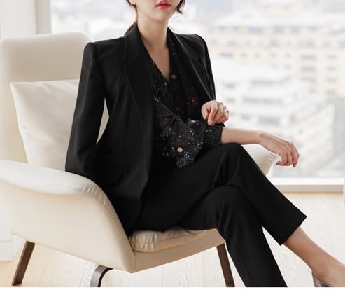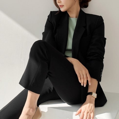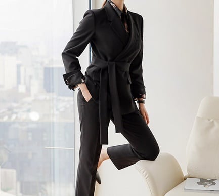 メリハリのあるウエストマーク仕立てのレトロなパンツスーツセットです。