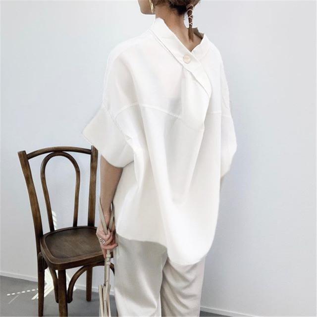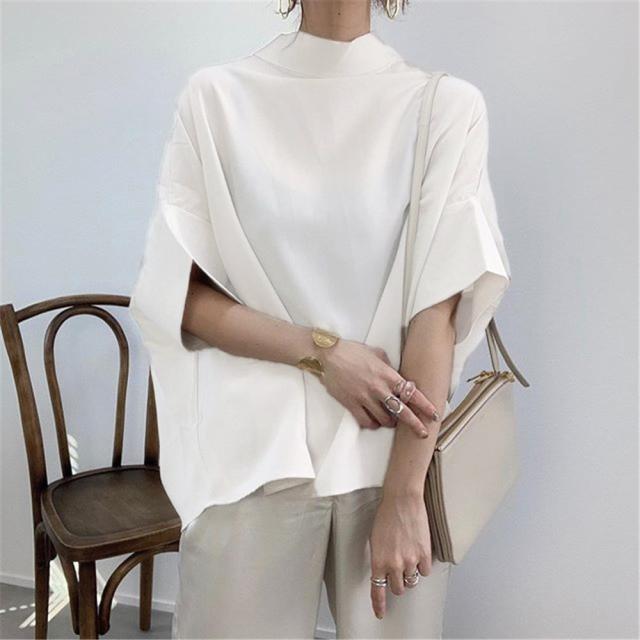 個性的 トップス Tシャツ カットソー プルオーバー 白トップス ショート ショート丈 袖あり 5分袖 バックシャン バックコンシャス かわいい 大人可愛い きれいめ シンプル カジュアル 大人